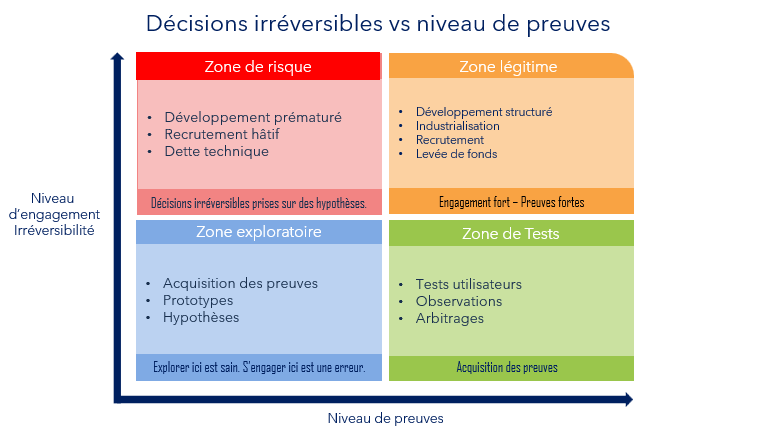 - une matrice Décision × Preuve pour situer un projet à un instant donné,